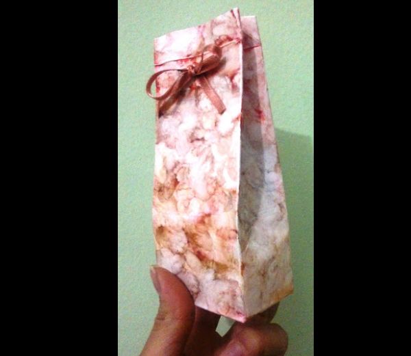 Um exemplo de reciclagem do bem: caixinhas de presente revestidas com papel.
