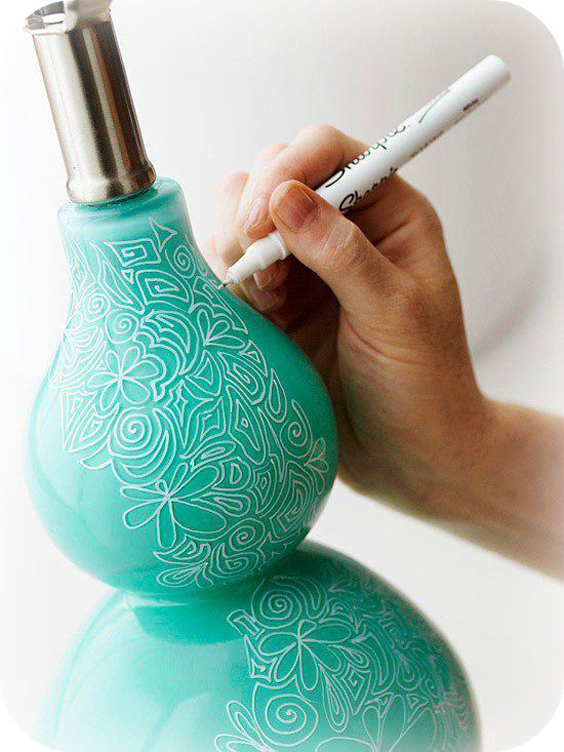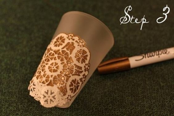Deixe o seu objeto com aparência sofisticada decorando-o com caneta permanente sendo usada nos espaços vazados de uma renda. Esta técnica imprime no objeto o motivo da renda e dependo da cor da caneta permanente escolhida um estilo diferente é conseguido.