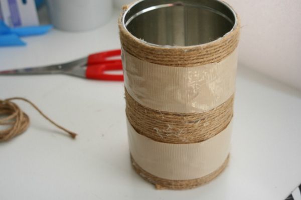 Comece separando todos os materiais que você vai utilizar em seu artesanato. Depois revista toda a lata escolhida com o fio rústico, comece a revestir a lata pela base, colando a ponta do fio rústico com a cola quente. Vá enrolando o fio rústico ao redor da lata, colando em alguns pontos, para manter todas as voltas no lugar. Cole a ponta ao final do trabalho na borda da lata, mas fazendo um bom acabamento. Deixe secar muito bem e aplique fita adesiva dupla face em algumas partes da sua lata.