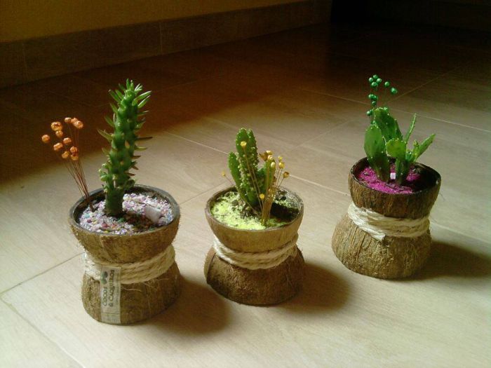 Confira muitos outros modelos e ideias de artesanatos feitos com coco, e invista neste tipo de trabalho artesanal, pois ele pode ser um bom início para a sua situação, caso você ainda não faça nenhum tipo de artesanato nem tenha incorporado nenhum tipo de trabalho manual em sua vida rotineira. Vale fazer monstrinhos com casca de coqueiro, vasinhos, enfeites diversos e o que mais a sua imaginação e criatividade mandar!