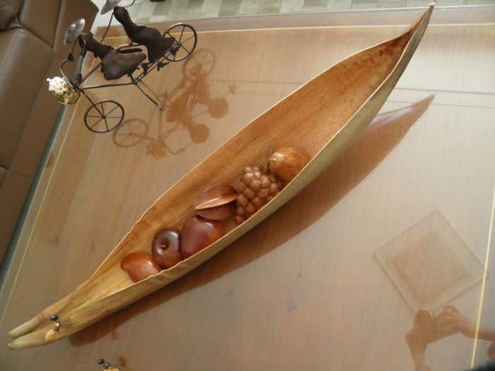 A canoa de coqueiro pode virar uma fruteira ou centro de mesa bem diferenciado. Aplique verniz ou outro produto de sua preferência, para impermeabilizar a casca, e acrescente detalhes, para garantir aquele charme a mais que todo artesanato sempre pede.