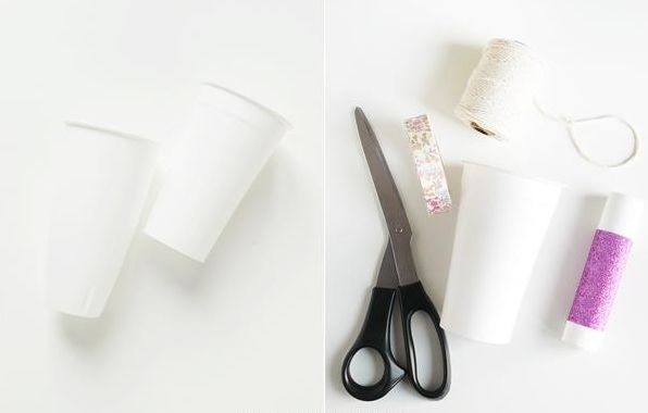 - Copos de plástico com o tamanho, o modelo, o estilo e a cor de sua preferência;