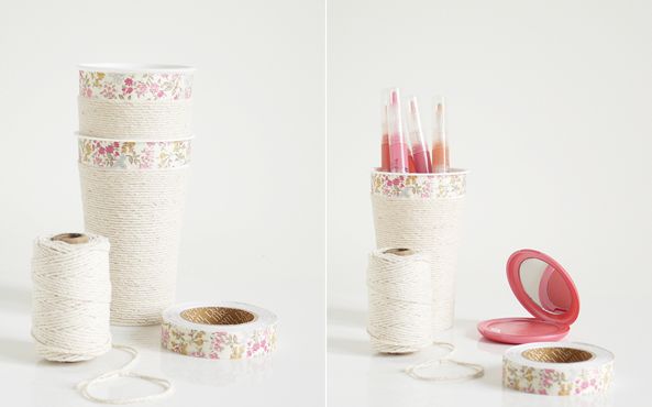 Com este fácil artesanato com copo de plástico as suas coisas nunca mais irão ficar desorganizadas. Escolha a fita adesiva que você vai utilizar em seu artesanato com a cor ou a estampa de sua preferência, pois será a fita adesiva escolhida que vai guiar o estilo final da sua peça.