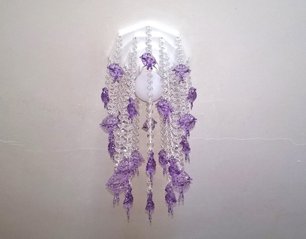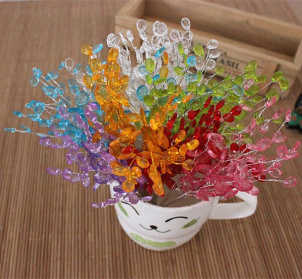 Cristais maiores e com formatos de gota, podem ser usados na confecção de flores que vão deixar qualquer ambiente muito mais bonito e sofisticado. Escolha uma base para sua flor e cole as gotas de cristal, formado a sua flor. E no meio cole um cristal arredondado. Você pode usar pistola de cola quente para colar as partes.
