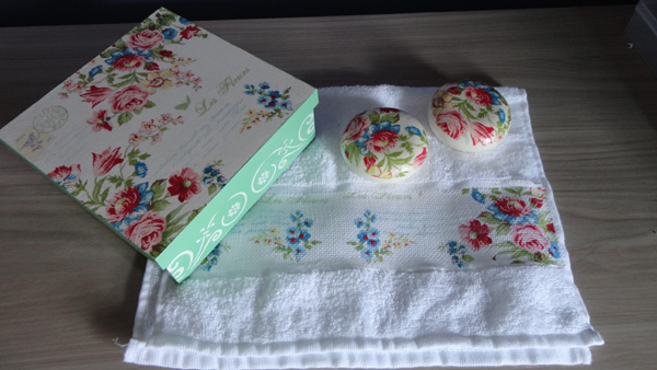 Para incrementar o seu sabonete com decoupage, se você for presentear ou se você for vender, você pode criar toalhas de banho, toalhas de mão e caixinhas com a mesma decoupage, para criar um conjuntinho muito fofo que vai encantar ainda mais quem o ver.