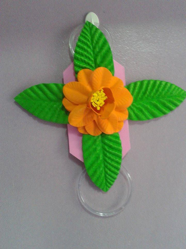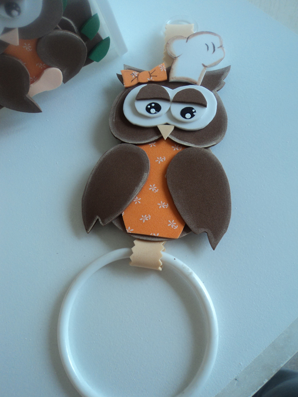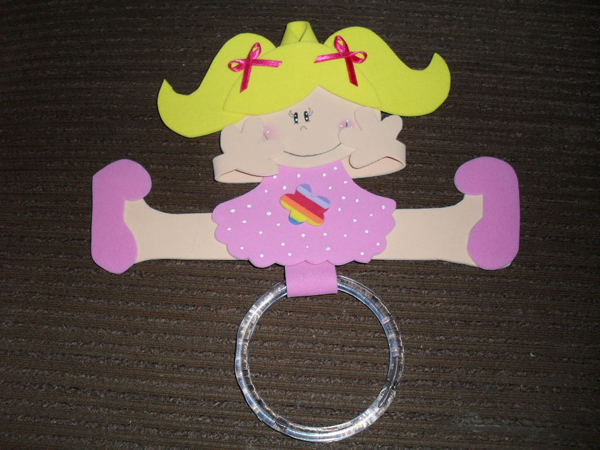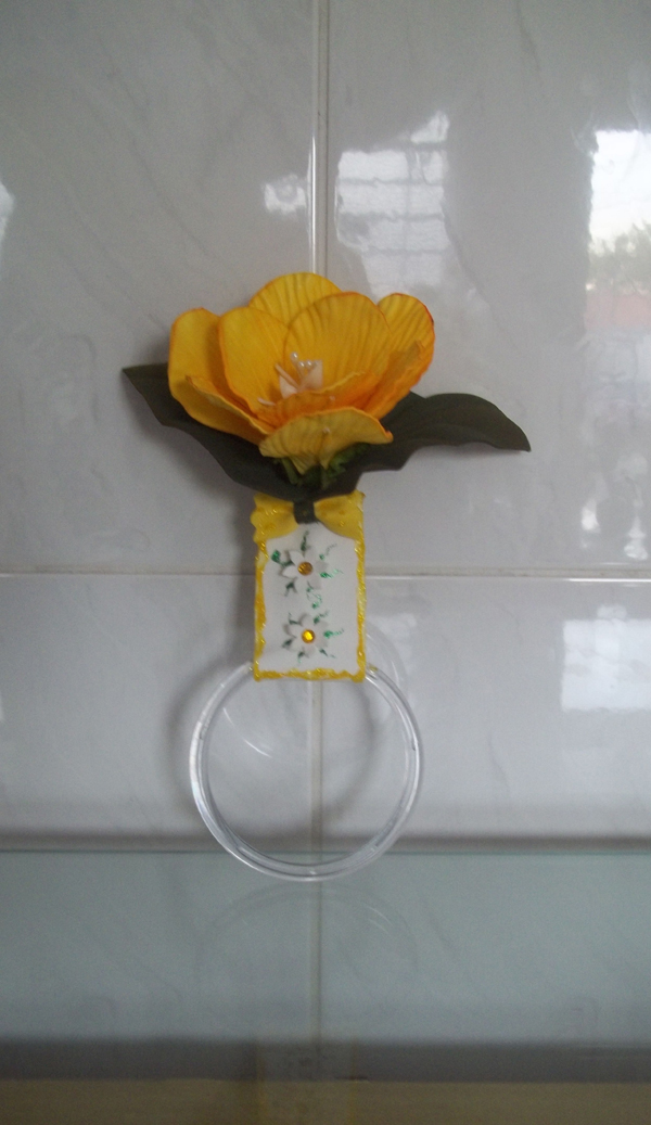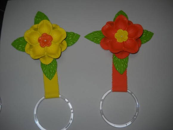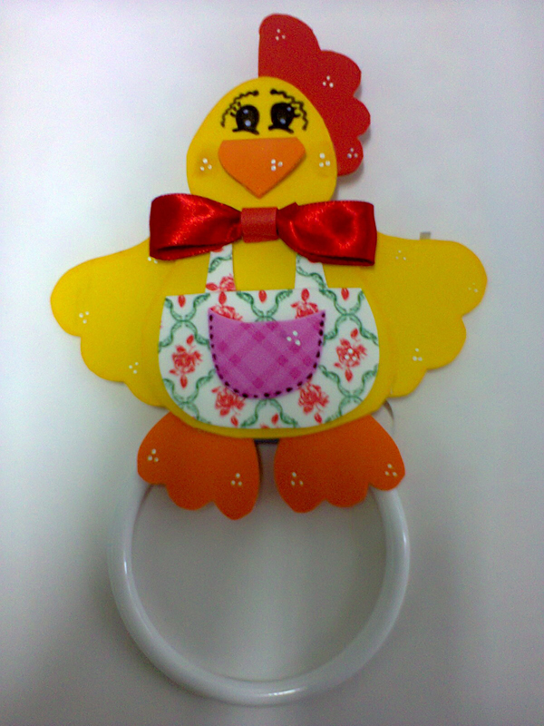 Se você quer fugir do lugar-comum dos enfeites em EVA para cozinha com modelos de bichinhos, você pode fazer flores, que trazem ainda a alegria para o cômodo, além de beleza e diferenciação. E se quiser incrementar o seu artesanato, frise as partes da flor em uma forma específica para aquecer EVA, e encha a flor com um enchimento de sua preferência. Este porta pano de prato também pode frequentar outros ambientes de sua casa, para servir de suporte para toalha, por exemplo.
