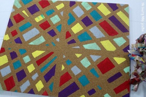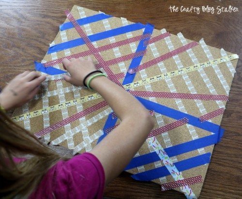 Continue posicionando pedaços de fita adesiva pela sua folha de cortiça, criando os formatos desejados.