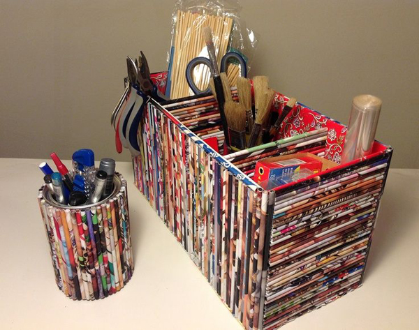 Só quem tem armários entulhados com revistas guardadas há tempos sabe como é bom ter novas ideias para reaproveitá-las. Se a revista já não tem mais utilidade lúdica ou para pesquisa, ficar guardando-a somente vai fazer a energia da sua casa ficar estagnada. Neste caso o melhor que se tem a fazer é abrir espaço, retirando as revistas de casa para que novas coisas entrem em sua casa e em sua vida. E fazer um artesanato com estas revistas, além de divertido é muito produtivo.
