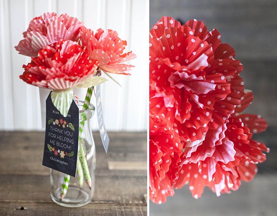 Agora, cole o lápis na parte inferior da sua flor e arrume as camadas de forminhas de doces para cima, criando a sua flor.