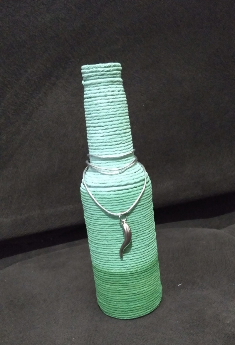 barbante e sisal na garrafa de vidro