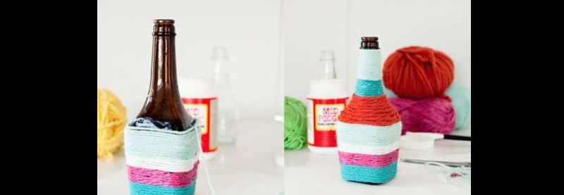 barbante colorido na garrafa