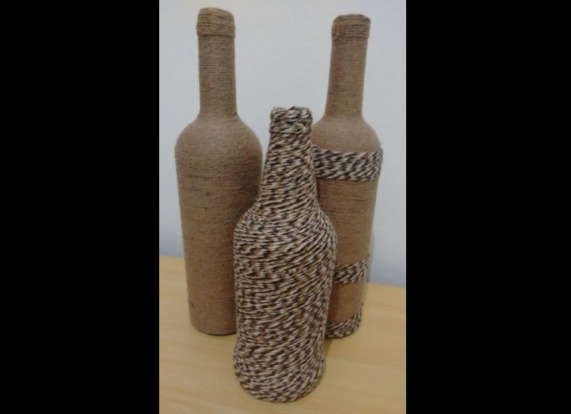 Artesanato com Garrafa de Vidro e Barbante