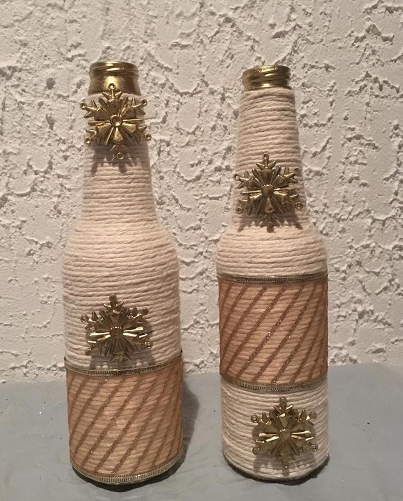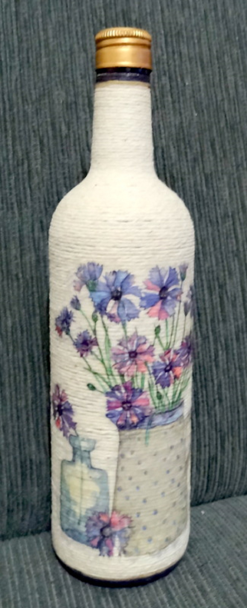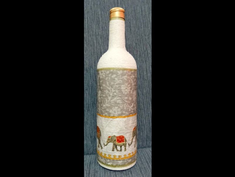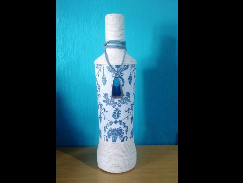 garrafa com barbante e decoupage