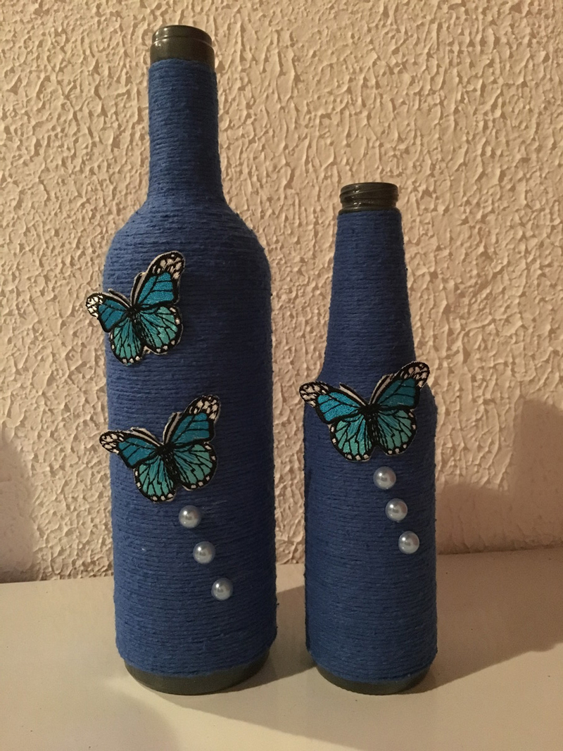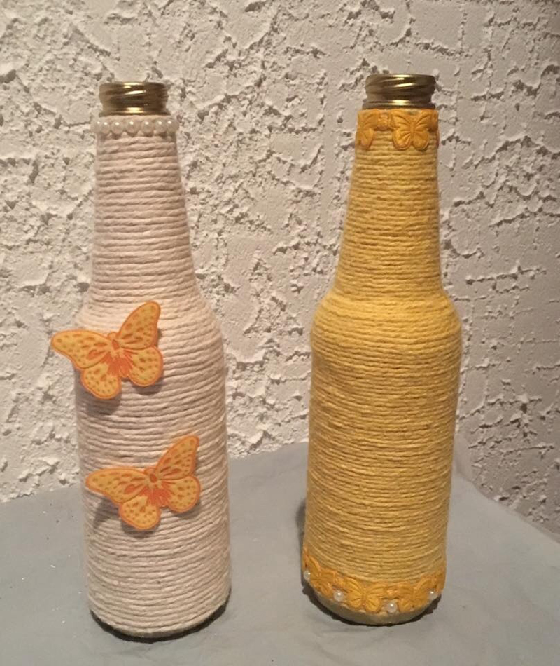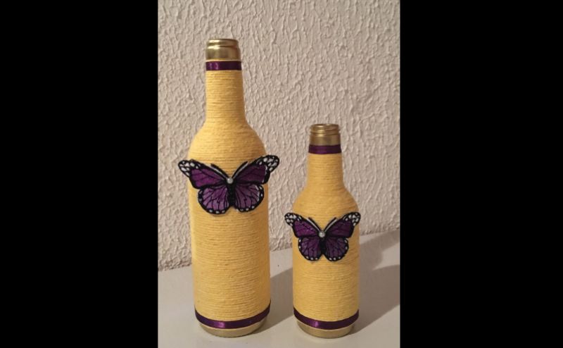 garrafa com barbante colorido e borboleta