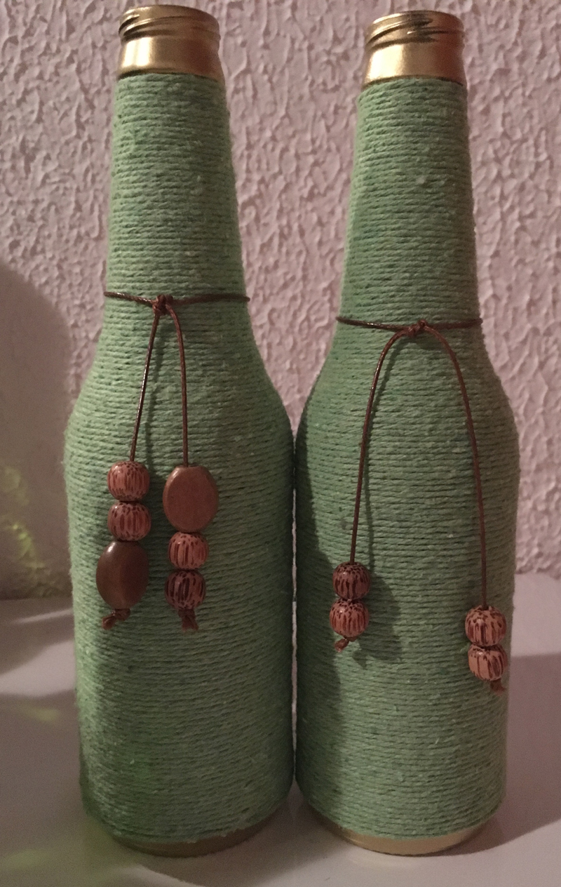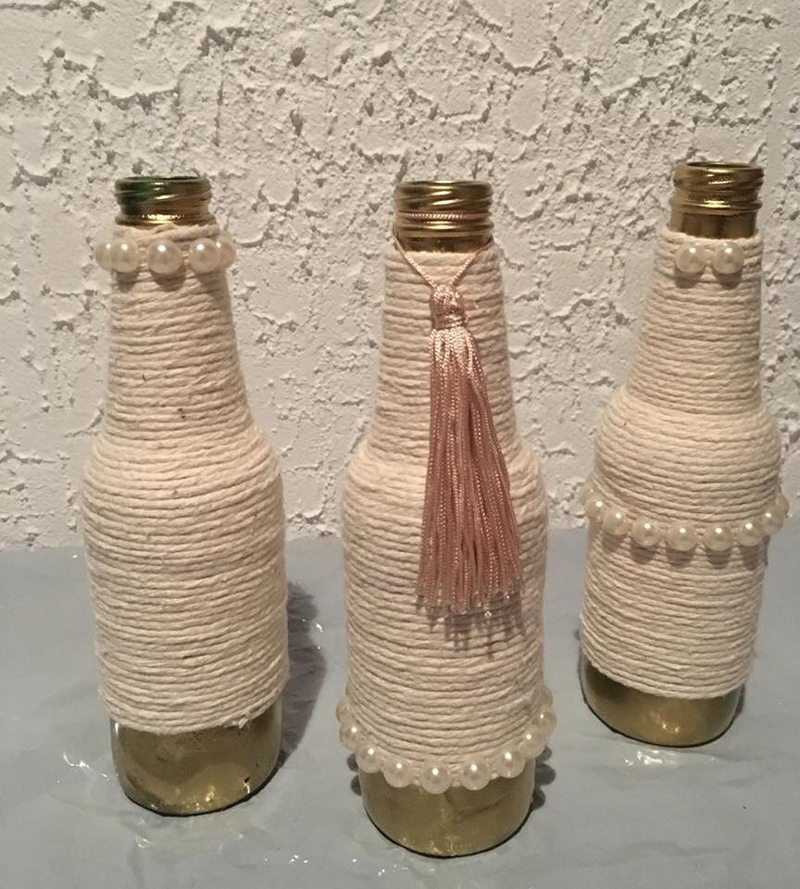 broches na garrafa com barbante
