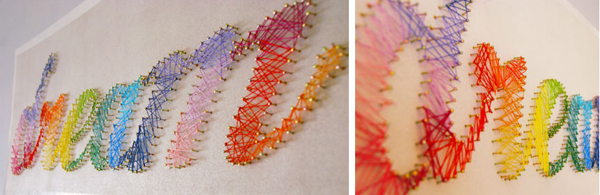 Quando chegar a determinadas partes da palavra que precise unir voltas do arame, enrole a linha ao redor de todas as voltas do arame, mantendo-as juntas. Quando chegar ao final da palavra cole muito bem a ponta da linha, fazendo um bonito acabamento. E está pronto!