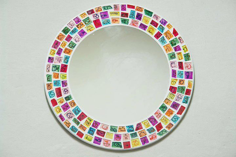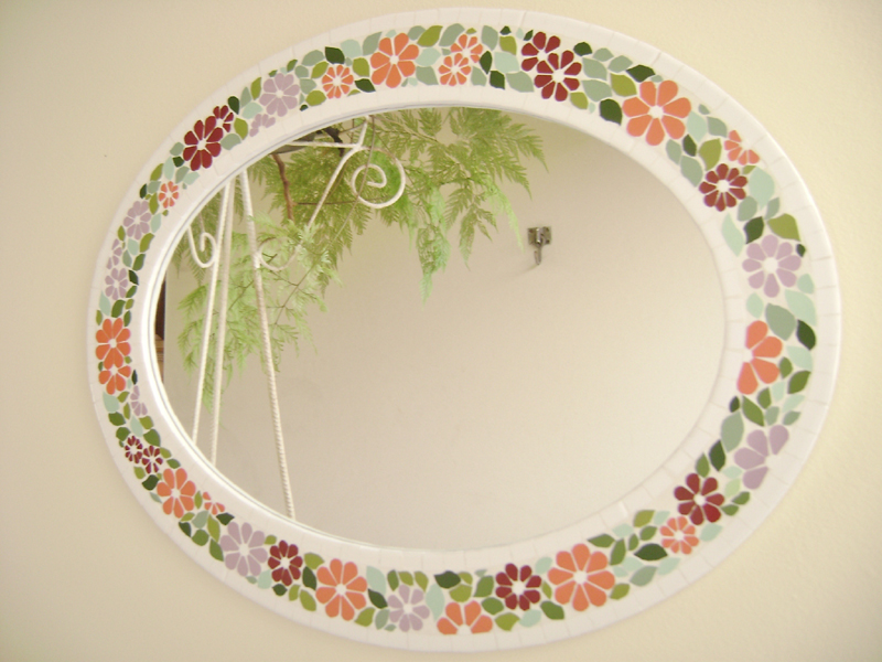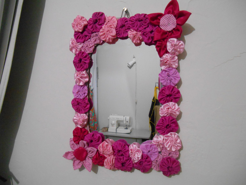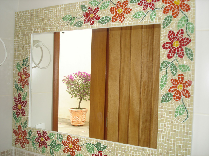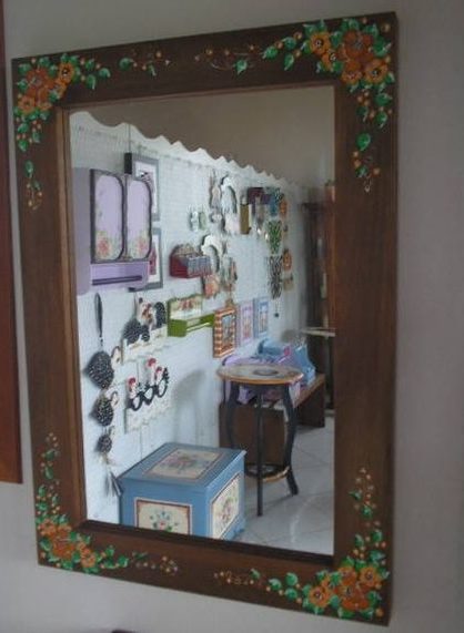 A customização da moldura de espelho pode ser a que você quiser, e usando a técnica artesanal que você quiser.