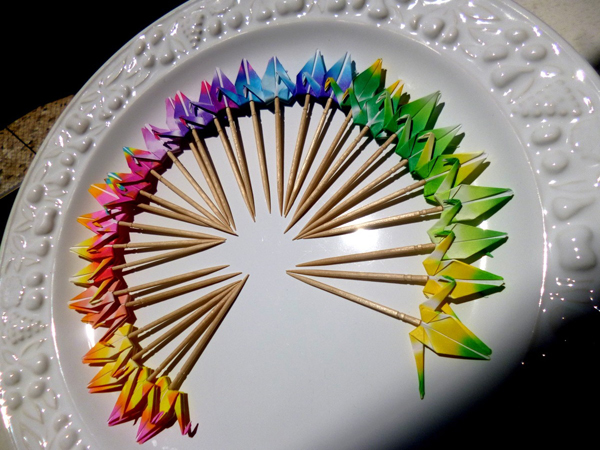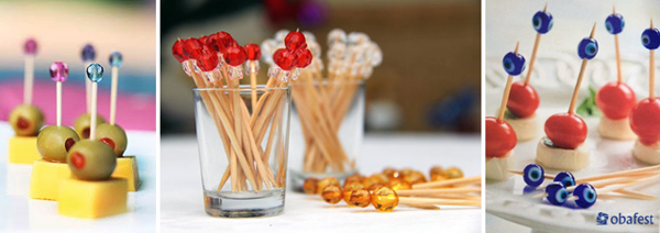 Para espetar petiscos você também pode fazer artesanato em palito de dente. Você pode fixar pedrarias, pode fixar no palito de dente um olho grego (para espantar da sua vida a inveja e o olho gordo), pode fixar contas coloridas e até fazer origami e fixar no palito de dente, se gostar de algo inusitado e quiser uma decoração de palito de dente descartável.