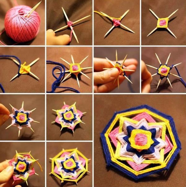 Você também pode apostar em estrelas ou mandalas que possuem os palitos de dente como estrutura do artesanato. Cores e padrões podem ser os que você desejar.