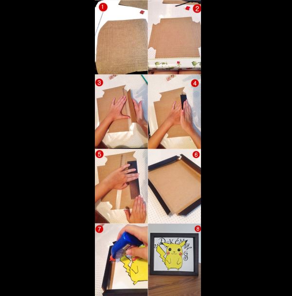 Meça o tamanho da foto ou da imagem que você vai usar e risque ao redor desta imagem ou da foto no meio do papel cartão. Ao redor desta marca, faça os riscos que serão as dobras para criar a moldura 3D. Recorte os cantos, para encaixar melhor. Com o auxílio da régua, dobre os riscos feitos, para marcar os vincos da moldura. Cole as partes da sua moldura, com a cola escolhida. Posicione a foto ou a imagem no meio da moldura. Fixe pedaços de fita adesiva dupla face na parte detrás, para pendurar, se você quiser criar um quadro. Se quiser um porta-retrato, fixe na parte detrás um suporte para deixar a moldura de pé. E está pronto!