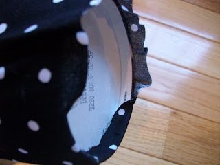 Em seguida, encape o seu pote de sorvete com o tecido, e utilizando a cola em spray para fixar o tecido ao redor da sua peça.