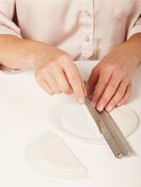 Comece separando todos os materiais que você vai utilizar em seu artesanato. Depois risque o centro do pratinho de papelão, mas de forma que crie uma tira bem no centro do prato. Vinque cada marcação e dobre, para que pratinho ao ser dobrado ao meio fique com uma pequena abertura, originada da tira do centro.