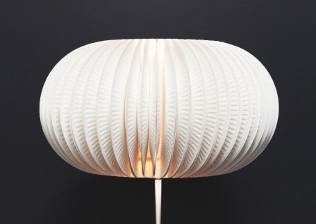 Agora, para finalizar a sua peça, termine de revestir toda a cúpula da sua luminária ou a cúpula do seu abajur com os pratinhos de papelão dobrados ao meio. Monte novamente o seu abajur ou a sua luminária. E está pronto!