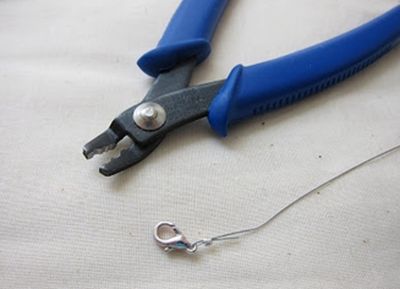 Em seguida, passe a ponta do arme pelo fecho e prenda, torcendo muito bem o arame.