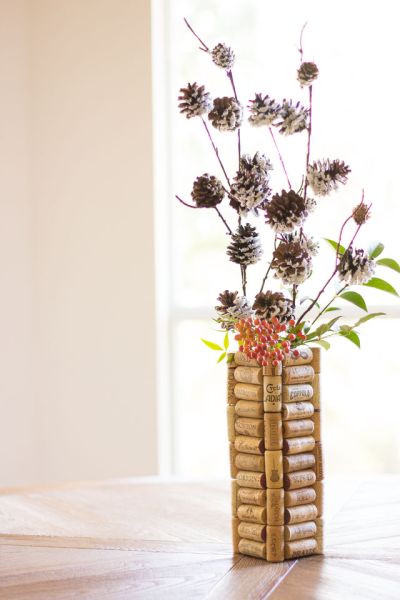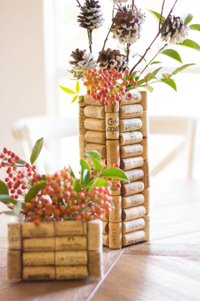 Créditos:http://www.designimprovised.com/2014/11/thrifty-diy-wine-cork-vases.html
