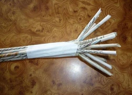 Em seguida, junte quantos rolinhos de jornal você quiser. Esta peça será o tronco de sua árvore. Cole um pedaço de papel ou de jornal ao redor de todos os rolinhos.