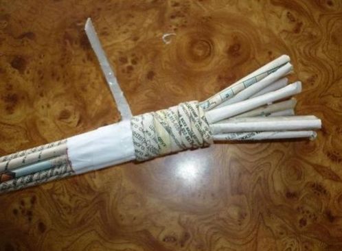 Logo após, enrole um rolinho de jornal ao redor da parte que será o tronco.