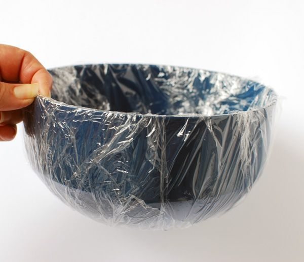 Em seguida, envolva todo o recipiente escolhido com pedaços de filme plástico.