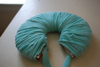 Agora, posicione uma tira de tecido ao redor do corte central do círculo de papelão.