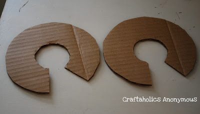 Em seguida, risque dois círculos no pedaço de papelão, depois risque um círculo menor no centro do círculo. No momento de cortar os círculos, corte o círculo central e corte também uma fenda em formato de trapézio.