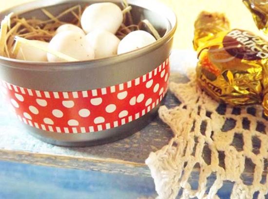 Em seguida, posicione e fixe a fita decorada escolhida ao redor de toda a lata.