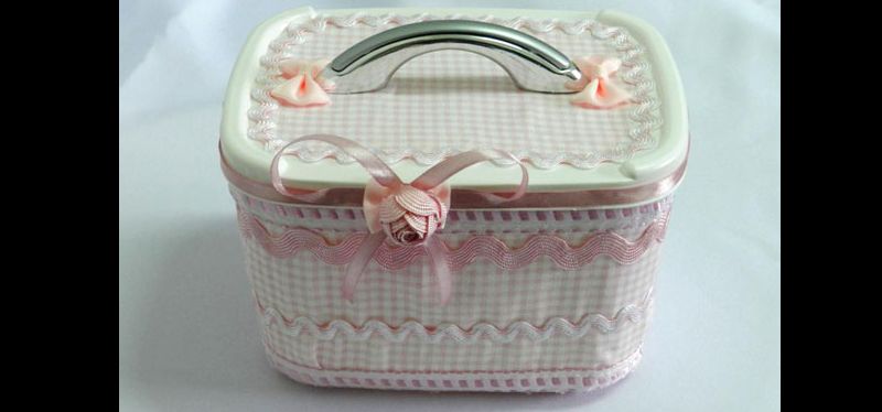 Comece separando todos os materiais que você vai utilizar em seu artesanato. Meça o tamanho do pote de sorvete, corte o tecido com esta medida e cole o tecido no pote. Aplique bico de renda ou o aviamento que quiser na parte superior e inferior do tecido colado. Cole manta acrílica ou o mesmo tecido na tampa. Cole o mesmo aplique ao redor da tampa. Para finalizar a sua peça, basta enfeitá-la com os apliques que você quiser.