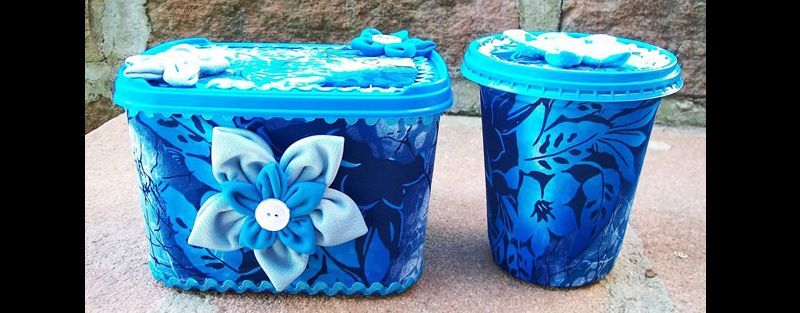 Veja mais exemplos de artesanato de pote de sorvete com tecido que podem ser feitos.