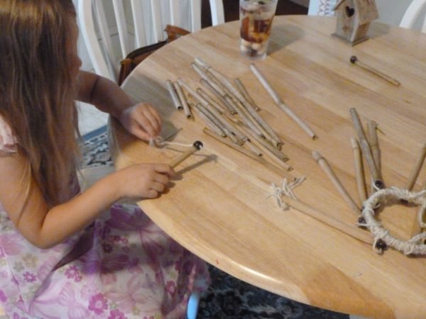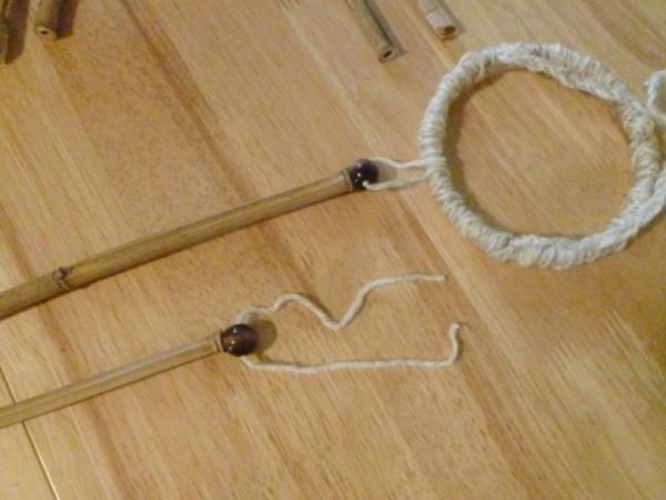 Em seguida, para finalizar a sua peça, termine de amarrar todos os pedaços de bambu que você quer utilizar em seu artesanato. E está pronto! Agora basta pendurar.