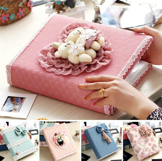 Colagens, papéis especiais e até bichinhos de pelúcia, podem ser empregados em seu álbum de fotos, e tanto na capa do álbum quanto nas páginas de dentro do seu álbum de fotos. Você pode também montar em sua casa o seu álbum de fotos, para que ele possua modelo único e exclusivo.