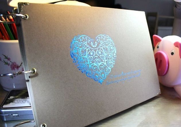 Para fazer um álbum de fotos em casa você pode furar apenas um dos cantos das folhas de dentro do álbum e também da capa do álbum e fixar uma argola de metal. Para fechar o álbum você pode usar um pino e um retalho de couro, para que o visual do seu álbum seja bem diferenciado e interessante. Nas páginas do álbum, se você quiser, você pode fixar algumas cantoneiras adesivas para fotos. Adesivos comuns também são bem-vindos neste caso. Escreva mensagens ao lado de cada foto e deixe o seu álbum ainda mais especial.
