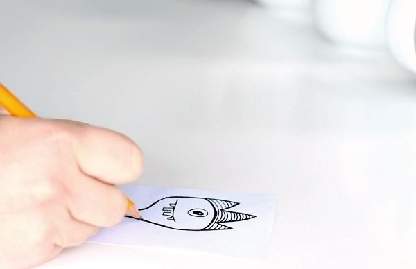 Em seguida, contorne todo o desenho com o lápis, marcando muito bem.