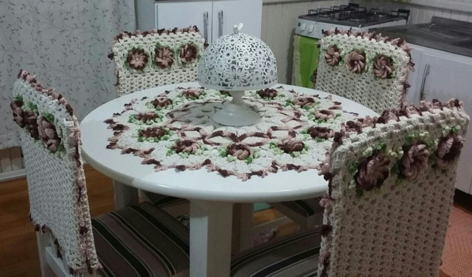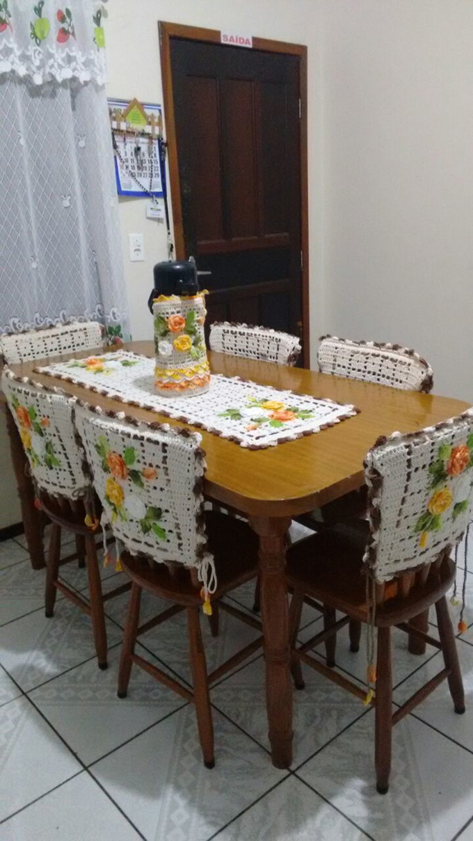 jogo de mesa e cadeiras em crochê