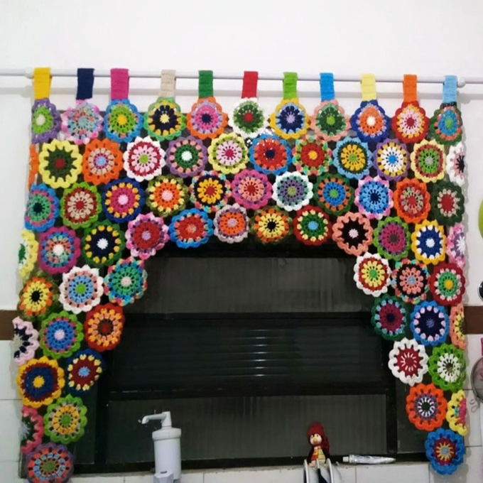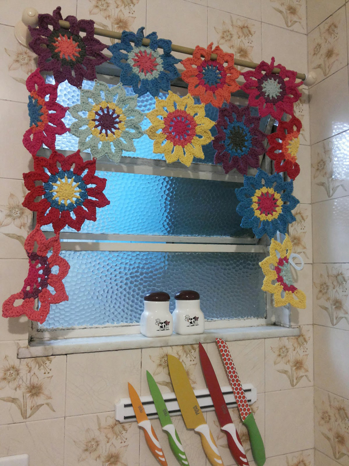 cortinas de flores em crochê