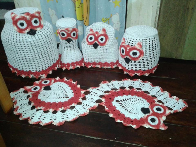 kit de corujas em crochê para cozinha