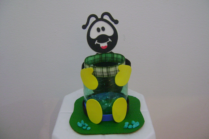 Outro fácil artesanato com EVA para a festinha infantil é o modelo em que apenas o detalhe da peça é feita com EVA, como um aplique para a lembrancinha da festa, por exemplo.