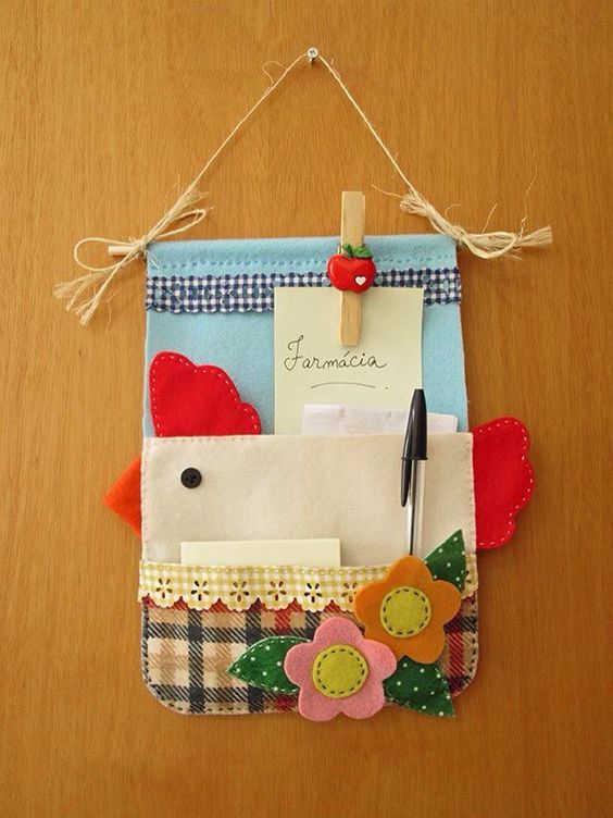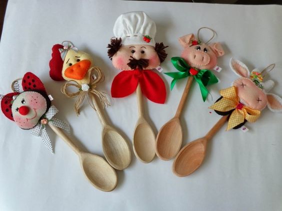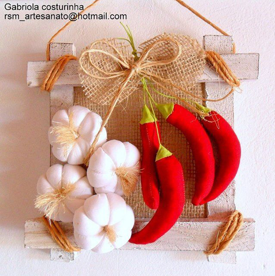 Um dos artesanatos com feltro para cozinha mais explorado é o enfeite para porta. Este tipo de artesanato é bem versátil, pois pode ser feito com vários modelos.