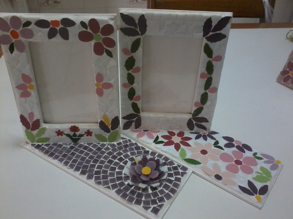 Para quem gosta de mosaicos pode fazer um quadrinho com mosaico de cerâmica. Para isso desmonte um quadro comum de sua preferência e monte o mosaico no fundo que já faz parte do quadro. Você pode colar os cacos com cola tudo, se preferir. Nos entremeios dos cacos você pode aplicar rejunte, cola colorida, tinta alto-relevo ou não aplicar nada.