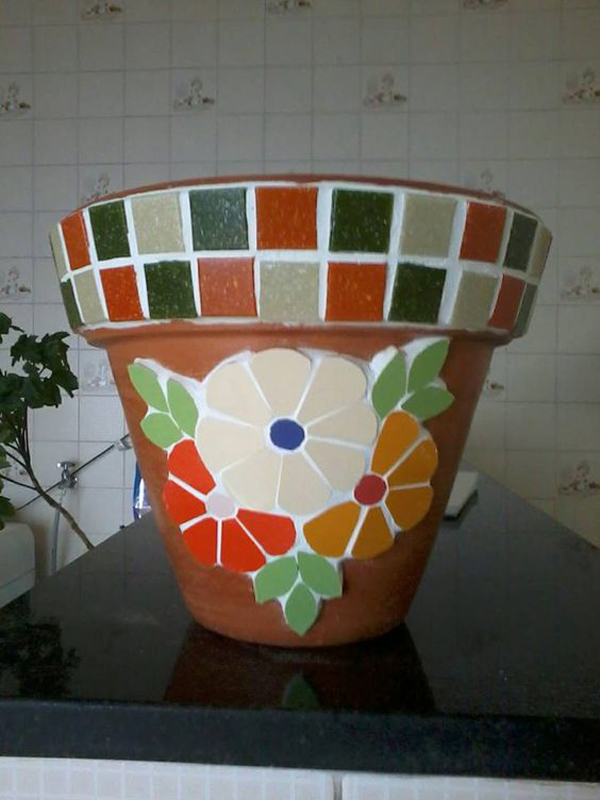 O mosaico é o tipo de artesanato que mais utiliza sobras de cerâmica de piso, mas com peças maiores é possíveis fazer outros itens, como o cachepô, por exemplo. Vale incrementar o seu artesanato com cerâmica de piso acrescentado outros materiais à peça, como vidro, pedrarias ou pintura.