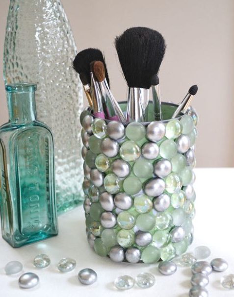Depois de receberem pedrarias ou uma camada de tinta, elas podem guardar as suas escovas ou produtos de higiene na bancada de seu banheiro.