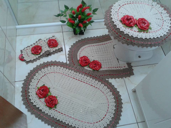 As molduras do banheiro são as partes mais exploradas do banheiro, mas se você sabe fazer crochê pode criar peças lindas para o seu banheiro, até mesmo porta-algodão ou porta-trecos, além de jogos de banheiro de crochê ou somente tapetes de crochê, por exemplo.